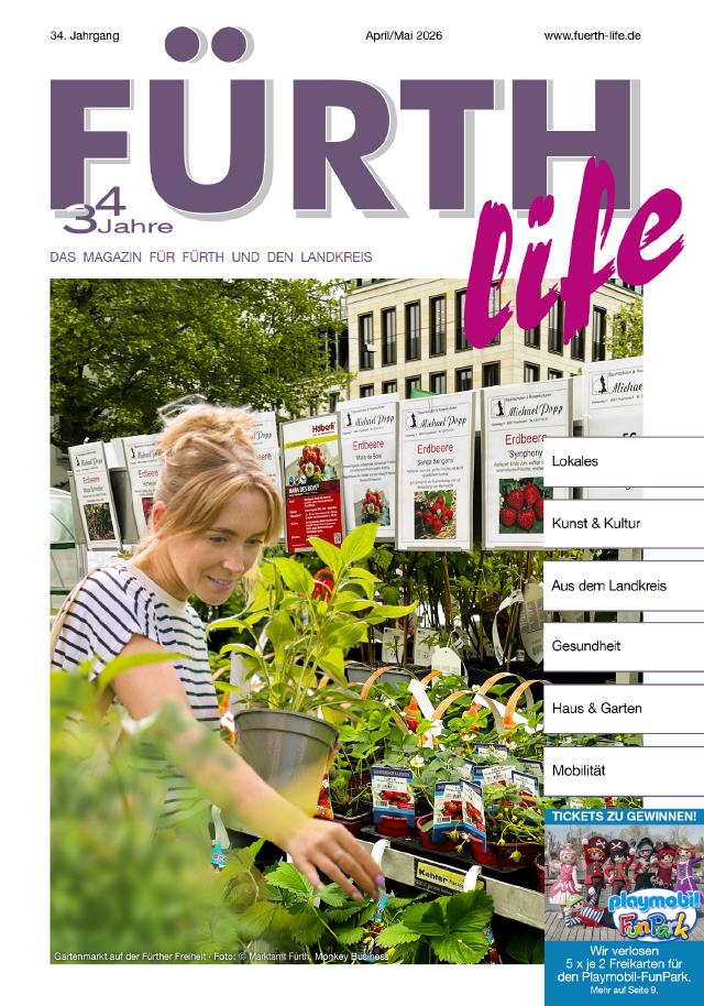 Seit nunmehr 34 Jahren ist Fürth-Life das Medium mit dem leserfreundlichen Konzept für Fürth und den westlichen Landkreis. Ein breites Themenspektrum bietet Information, Unterhaltung und Aktuelles. Durch die Haushaltsverteilung erreichen wir eine Zielgruppe mit hoher Kaufkraft. Durchgehend vierfarbig haben nicht nur Leser, sondern auch Inserenten ein sympathisches und zugleich werbewirksames Lifestyle-Magazin mit einer überzeugenden Leserblattbindung.